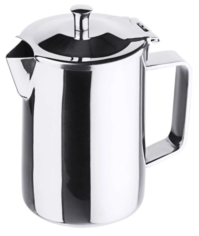 Kaffeekanne, aus Edelstahl 18/10, hochglänzend, mit Scharnierdeckel, Griffe stumpf angebracht- daher absolut hygienisch, extra schwere Qualität
