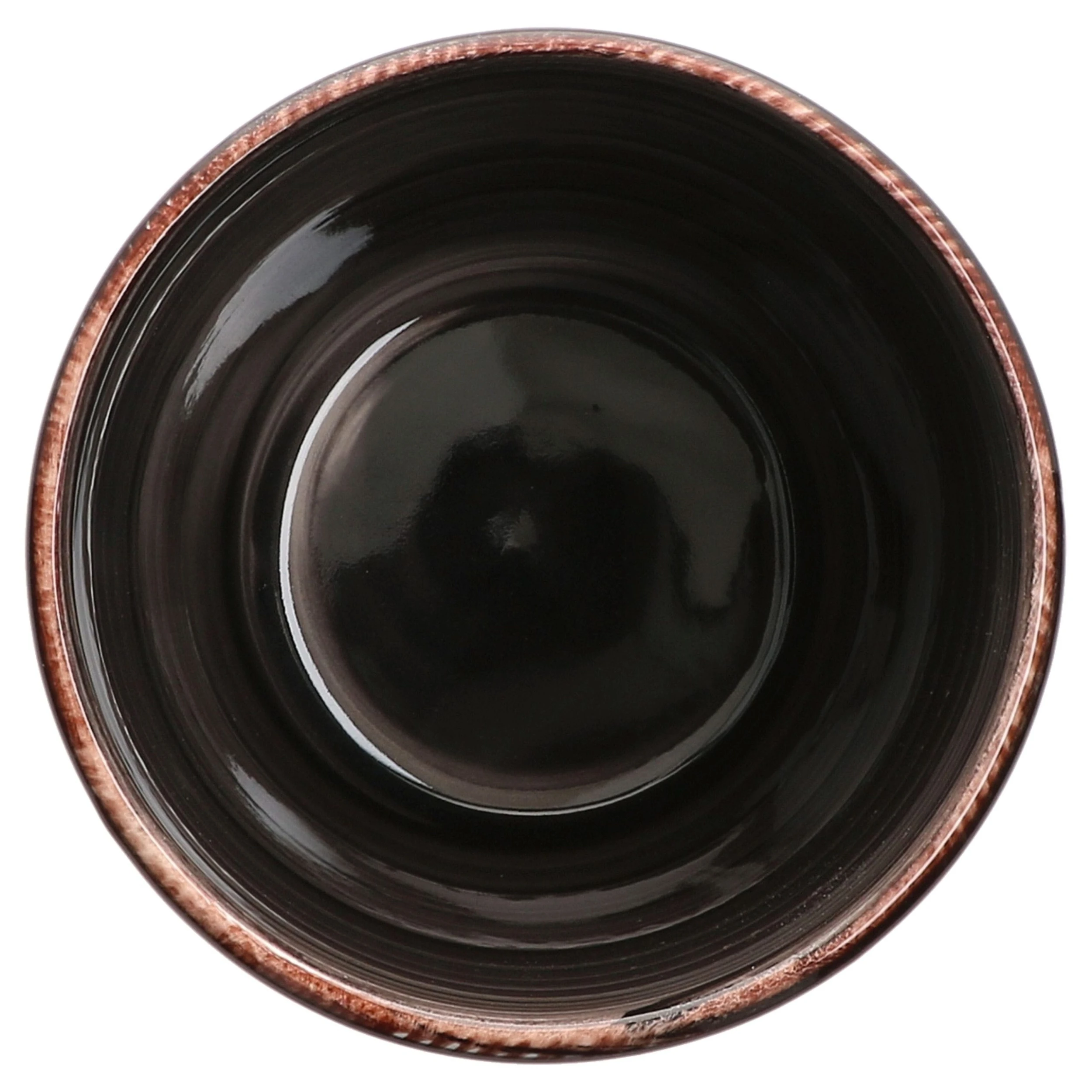 - Die schwarze Farbe verläuft strudelförmig außen und innen auf den Bechern und wird durch einen braunen Rand sowie einem cremefarbenen Boden ergänzt